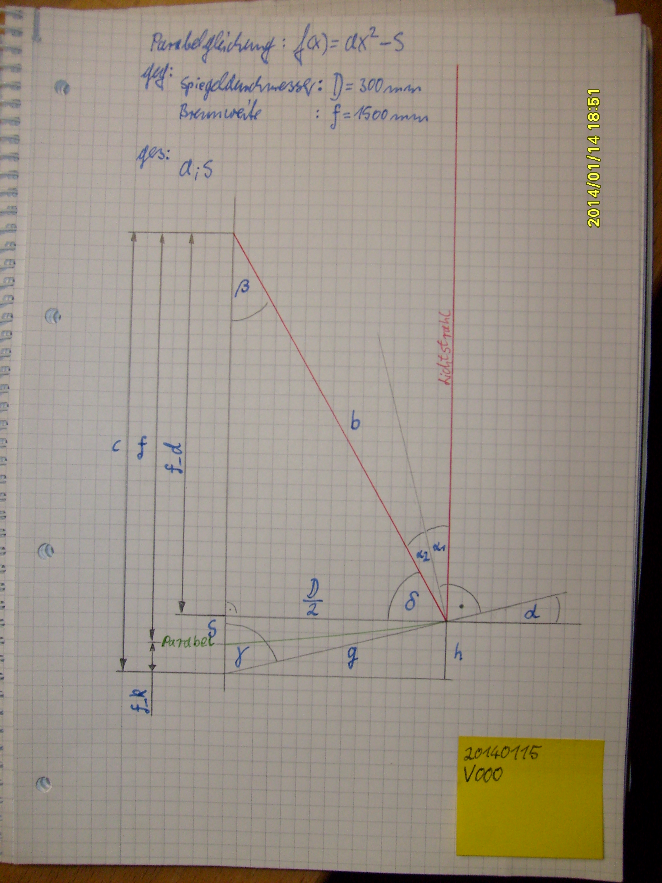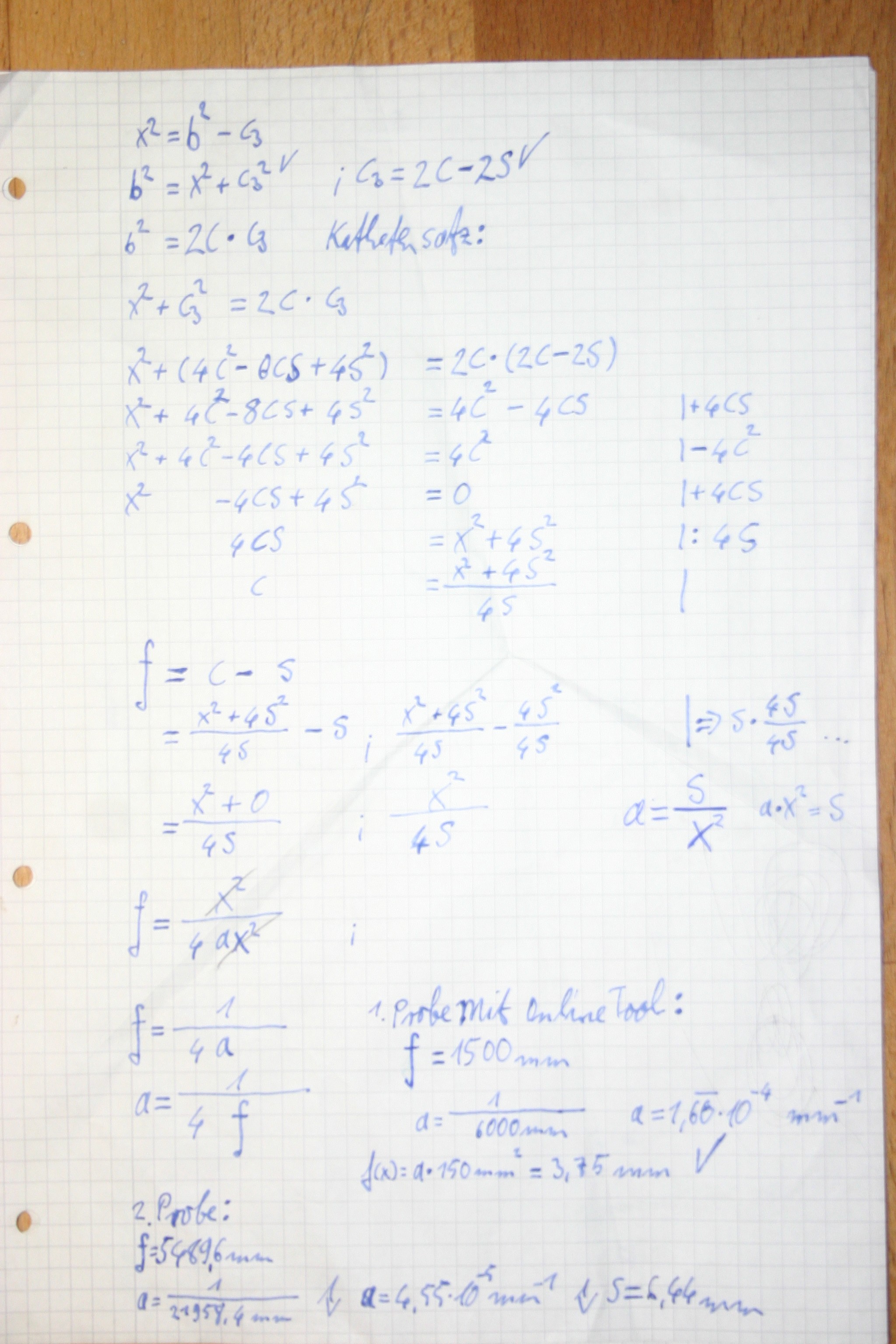 Das macht auch Sinn da die Krümmung der Parabel die ja direkt die Brennweite determiniert, vom Durchmesser unabhängig ist.